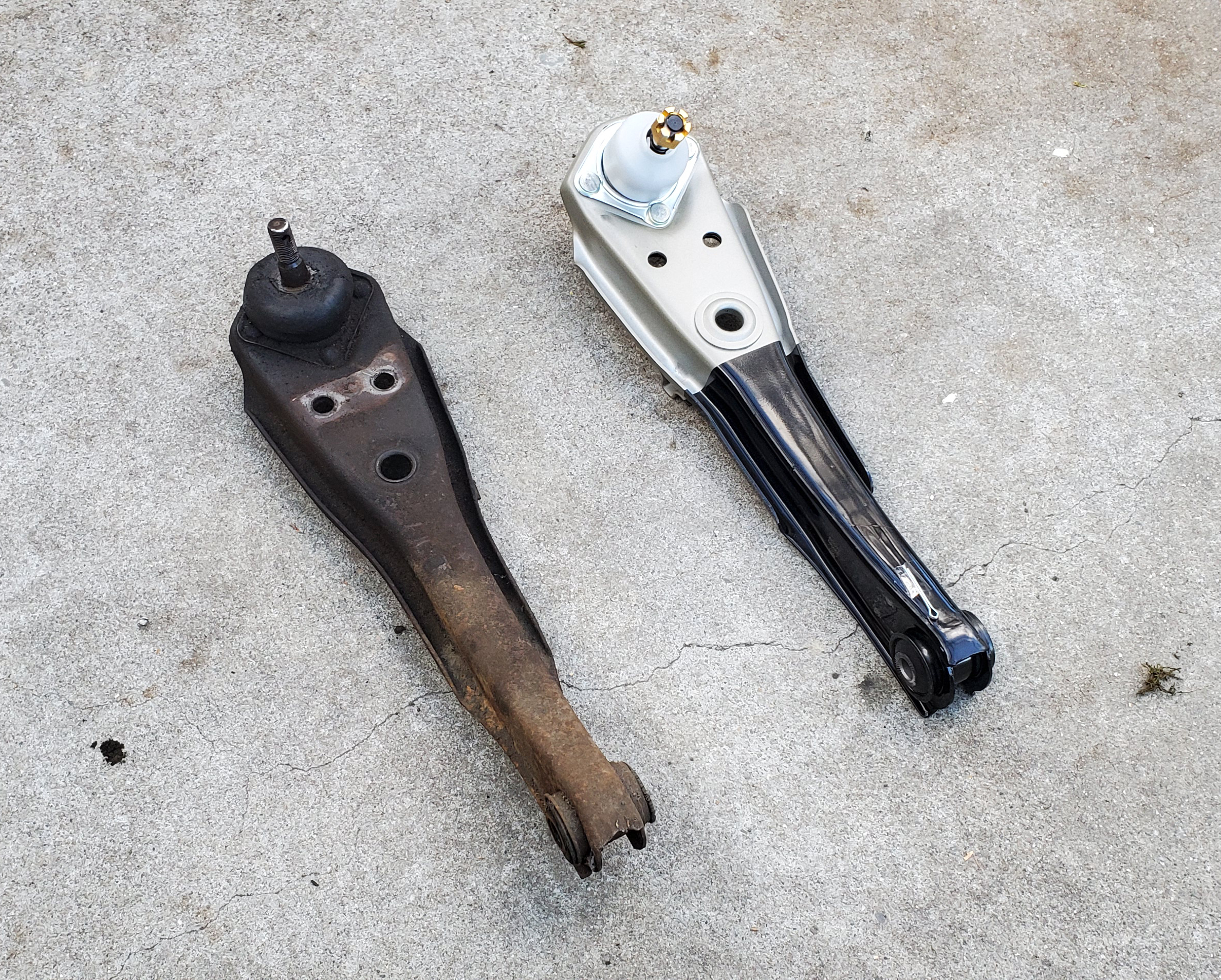 My father lived in the Sunset district of San Francisco for a while, and this car was his daily driver. The salty sea air beat the shit out of anything that wasn’t 100% coated, and most of the suspension was not spared. Most of the metal below the car’s beltline was quite corroded. Rather than attempting to restore the original tie rods and control arms, we opted for readily available and decent quality replacement parts online.